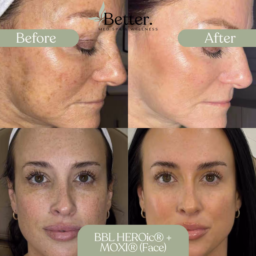 Better Med Spa & Wellness in Lincoln Park offers advanced Korean-inspired facials, injectables (including Botox, Dysport, Xeomin, and Daxxify), RF microneedling, body sculpting, laser hair removal, IV drip therapy, medical weight loss, peptide-based wellness programs, PRP-based procedures, and other evidence-based medical aesthetics. Treatments are built around personalized skin, body, and metabolic wellness plans so clients can target concerns like fine lines, acne, texture, etc. Our comprehensive before and after gallery showcases results from Better Med Spa's complete range of clinical treatments, including Korean advanced facials, HydraFacial, Botox and dermal filler injectables, laser skin resurfacing, microneedling, RF microneedling, chemical peels, facial and body treatments. Each before and after is labeled with the specific treatment(s) used, the number of sessions completed, and the timeframe for results. You can filter the gallery by treatment category—facial rejuvenation, injectables, laser treatments, or body contouring—to see results most relevant to your aesthetic goals. Whether you're considering preventative skincare facials, corrective injectables, or comprehensive laser treatments, our gallery demonstrates the full range of transformations our board-certified practitioners achieve. Many before and afters also include client testimonials sharing their experience and satisfaction. If you're interested in a specific treatment not prominently featured, we encourage you to schedule a consultation—we'd love to discuss your goals and show you additional case studies during your visit.re, pigmentation, laxity, stubborn fat, and weight-management challenges with a curated mix of services that support both visible results and whole-body health.